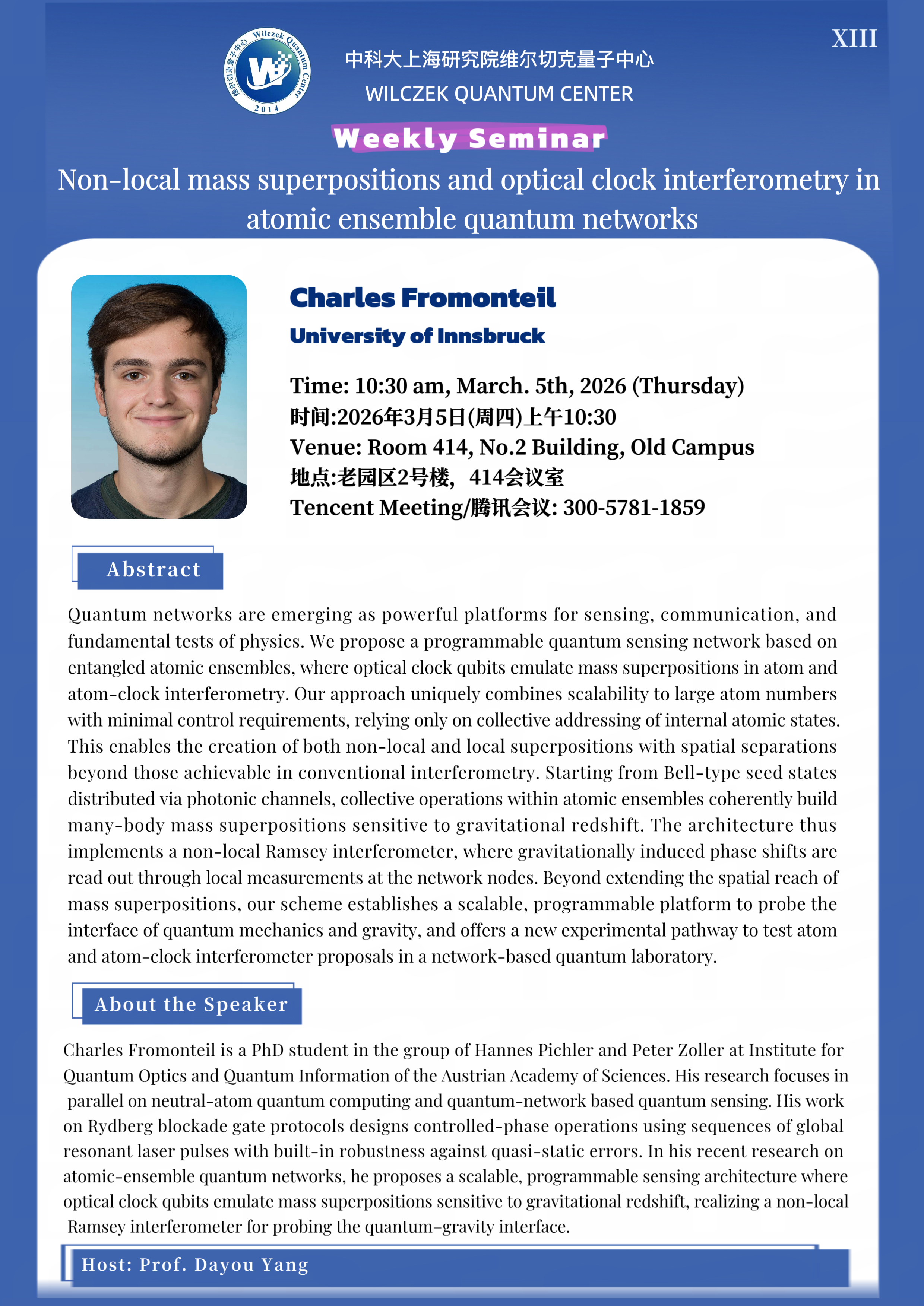 Seminar XIII:Non-local mass superpositions and optical clock interferometry inatomic ensemble quantum networks
