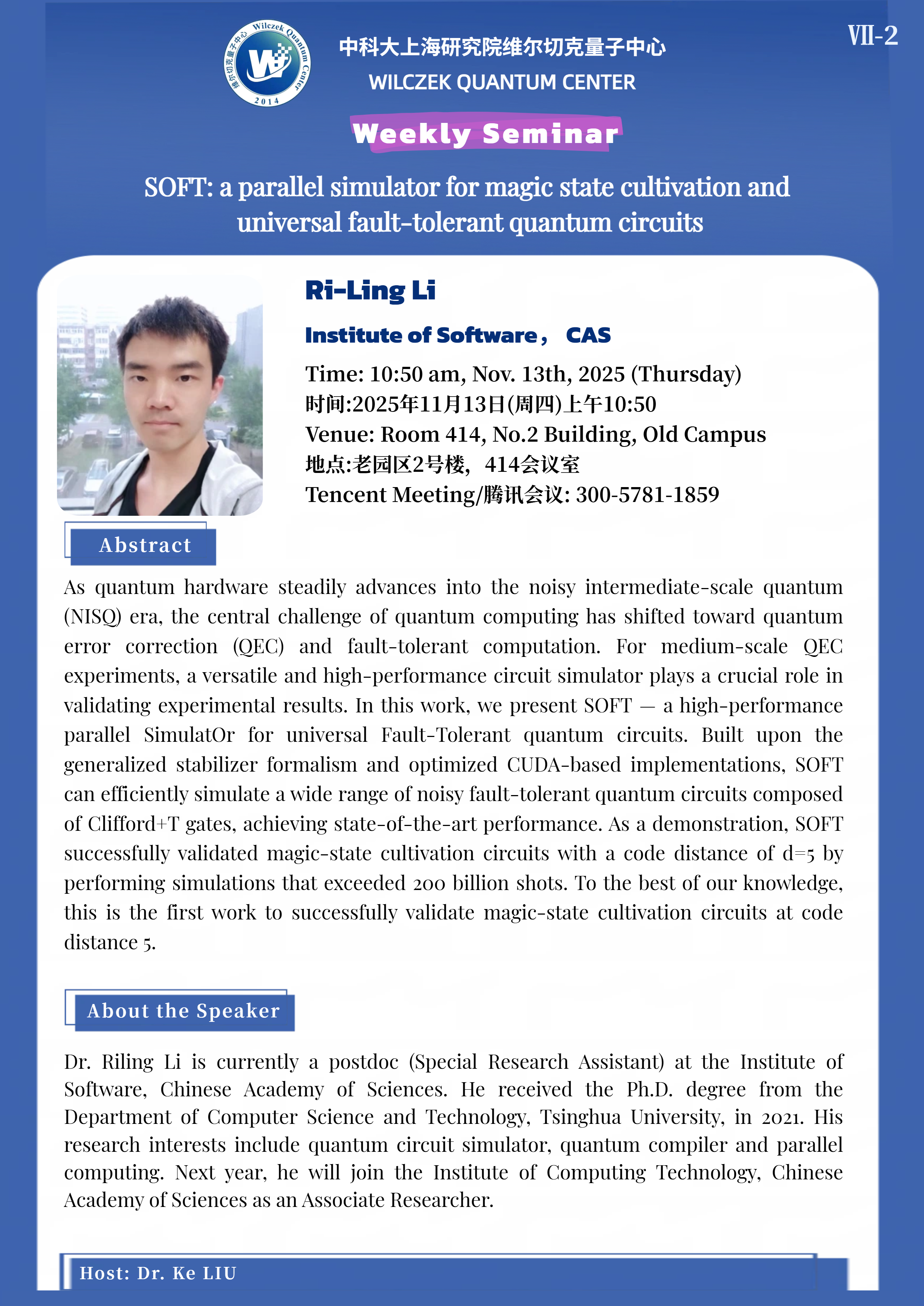 学术周会VII-2:SOFT: a parallel simulator for magic state cultivation and universal fault-tolerant quantum circuits